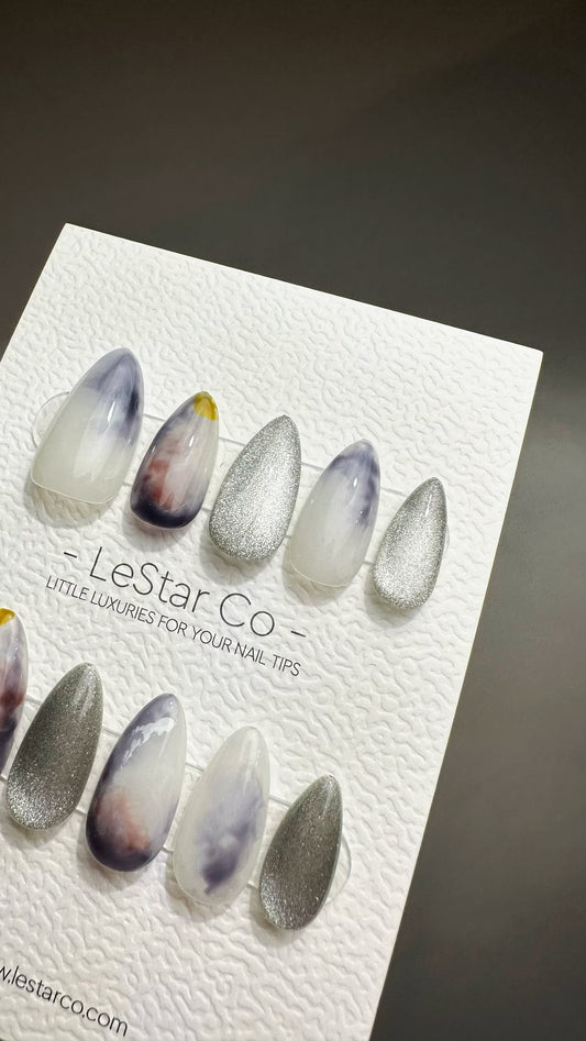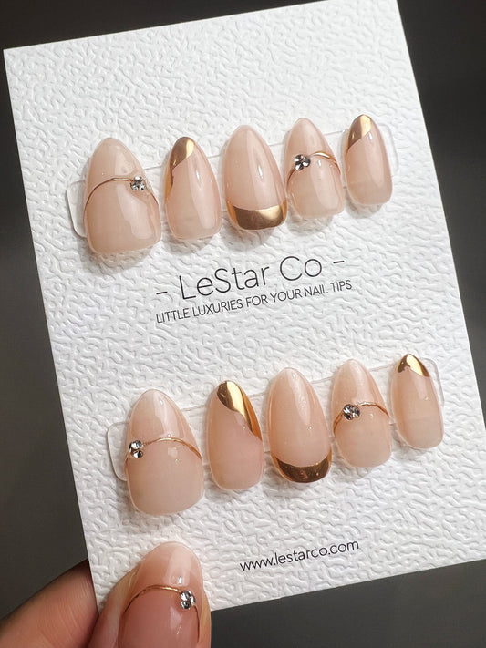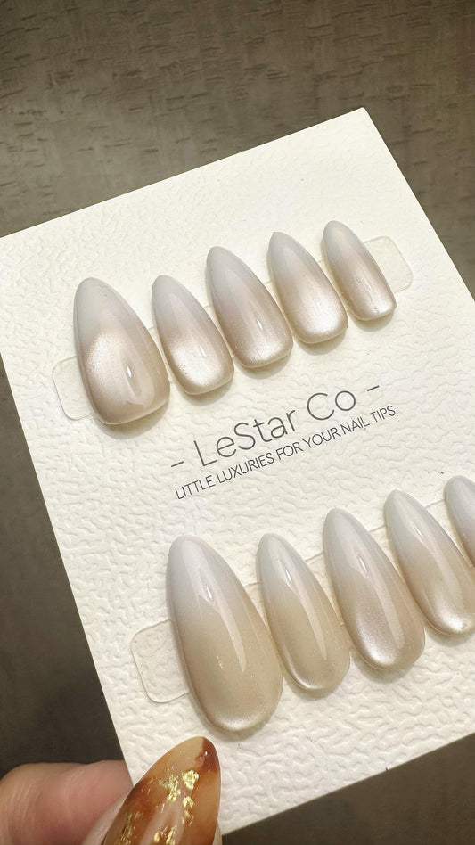 Reusable Champagne Veil Cat Eye Effect | Premium Press on Nails Gel Hand Painted Pressons Customizable Gel Nail Artist fake nails WM937