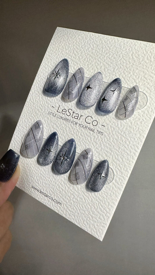 Reusable Jump Into It Sheer Blue Cat eye | Nails Premium Press on Nails Gel Manicure | Fake Nails | Handmade | Lestarco faux nails 397zz