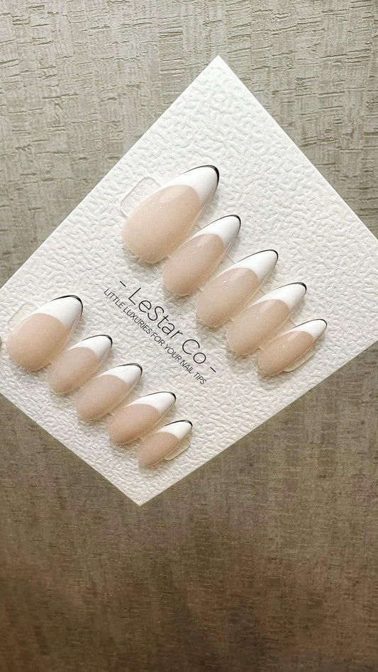 Reusable Timeless French Tip | Premium Press on Nails Gel Hand Painted Pressons Customizable Gel Nail Artist faux nails WM885