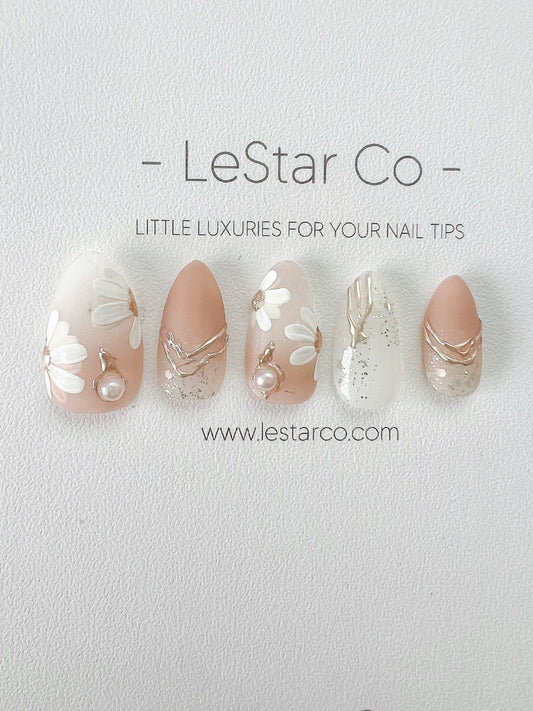 Reusable Soft Pink Flower | Premium Press on Nails Gel | Fake Nails | Cute Fun Colorful Gel Nail Artist faux nails ML276