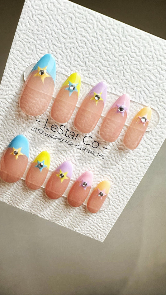 Reusable Pastel Starry Skies French Tip | Premium Press on Nails Gel | Fake Nails | Handprint Gel Nail Faux nails YR789
