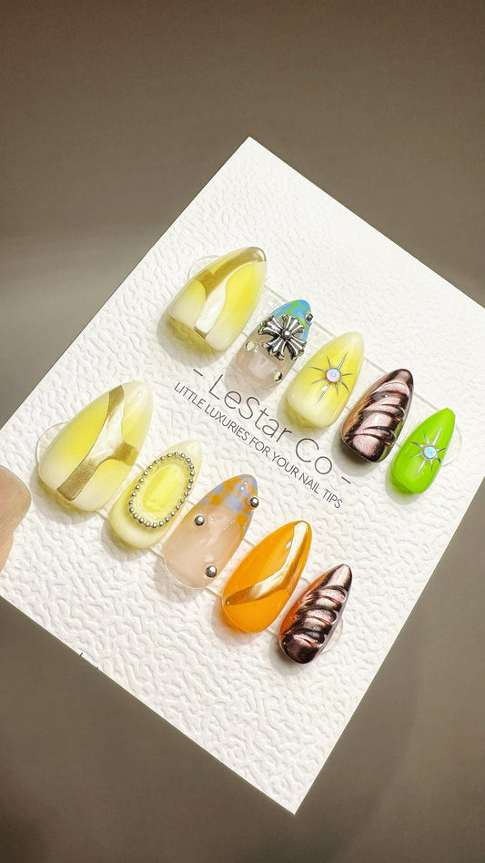 Reusable Tropical Mosaic| Premium Press on Nails Gel Hand Painted Pressons Customizable Gel Nail Artist faux nails ML802