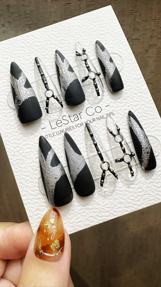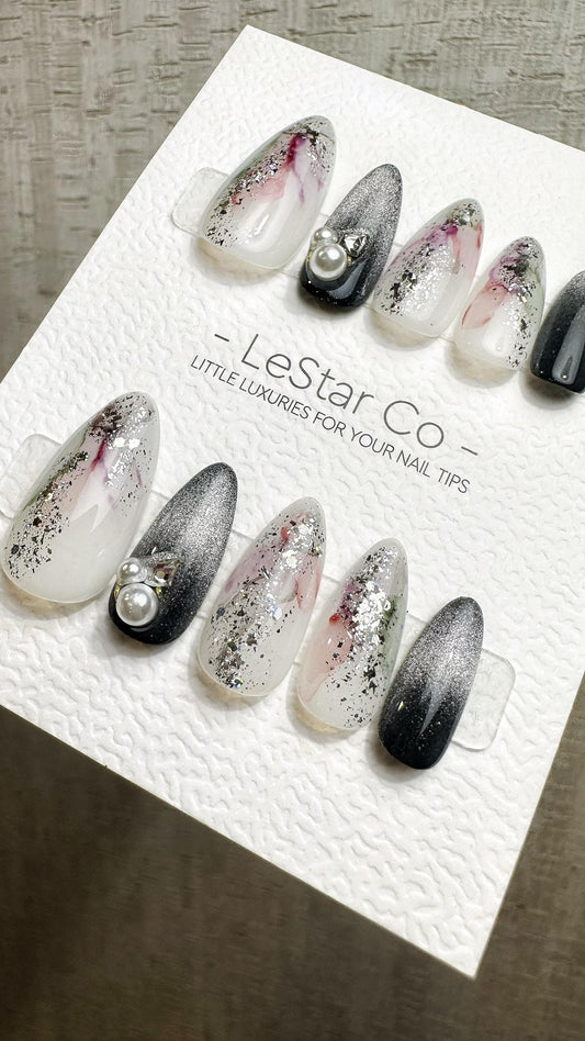 Reusable Metallic Veil| Premium Press on Nails Gel Hand Painted Pressons Customizable Gel Nail Artist faux nails WY819