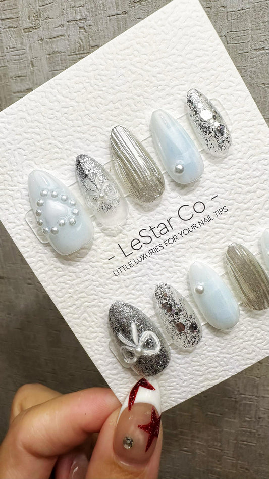 Reusable Pearl Frost | Premium Press on Nails Gel Hand Painted Pressons Customizable Gel Nail Artist faux nails BB877