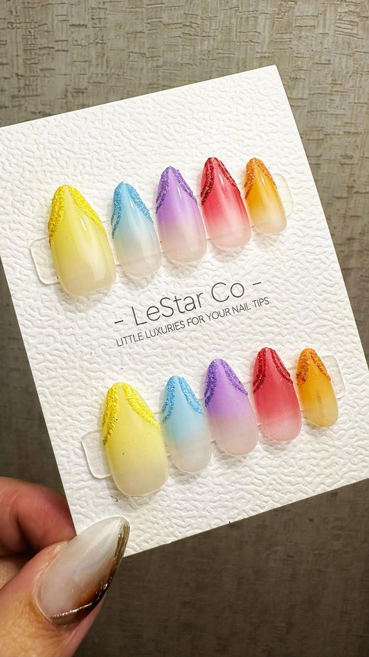 Reusable Rainbow Tip | Premium Press on Nails Gel Hand Painted Pressons Customizable Colorful Gel Nail Artist faux nails ML900