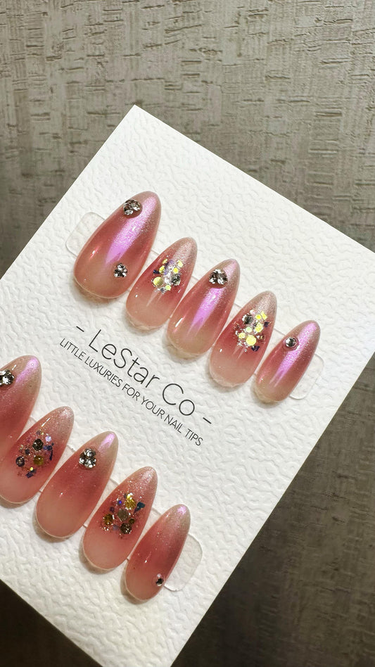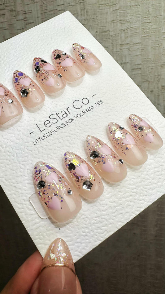 Reusable Pink Love Confetti | Premium Press on Nails Gel Hand Painted Pressons Customizable Gel Nail Artist faux nails ML906