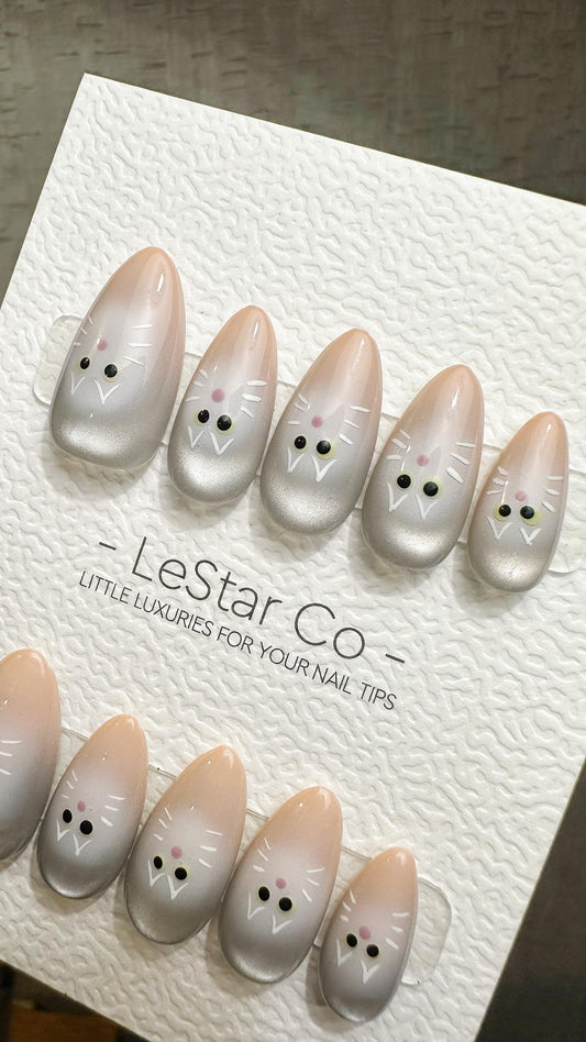 Reusable Blush Paws | Premium Press on Nails Gel Hand Painted Pressons Customizable Gel Nail Artist faux nails ML926