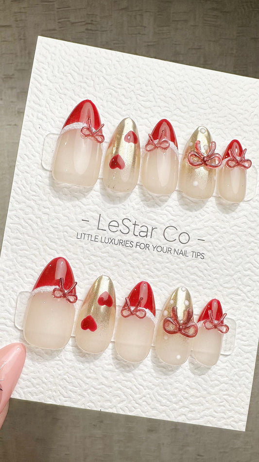 Reusable Ruby Ribbon French Tip| Premium Press on Nails Gel | Fake Nails | Cute Fun Colorful Gel Nail Artist faux nails ML930