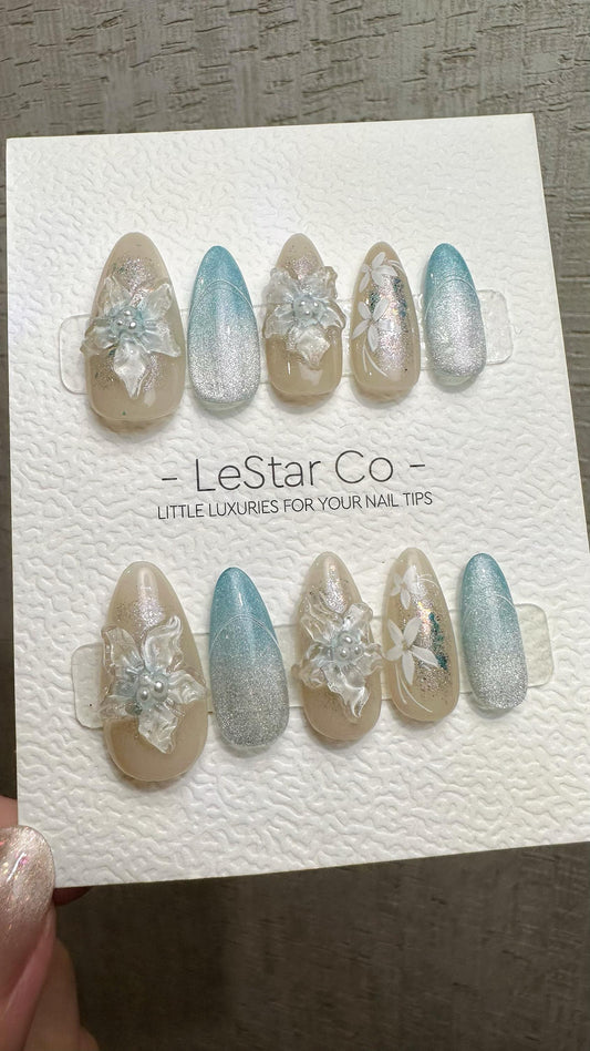 Reusable Glacial Floral Dream| Premium Press on Nails Gel | Fake Nails | Cute Fun Colorful Gel Nail Artist faux nails QN964