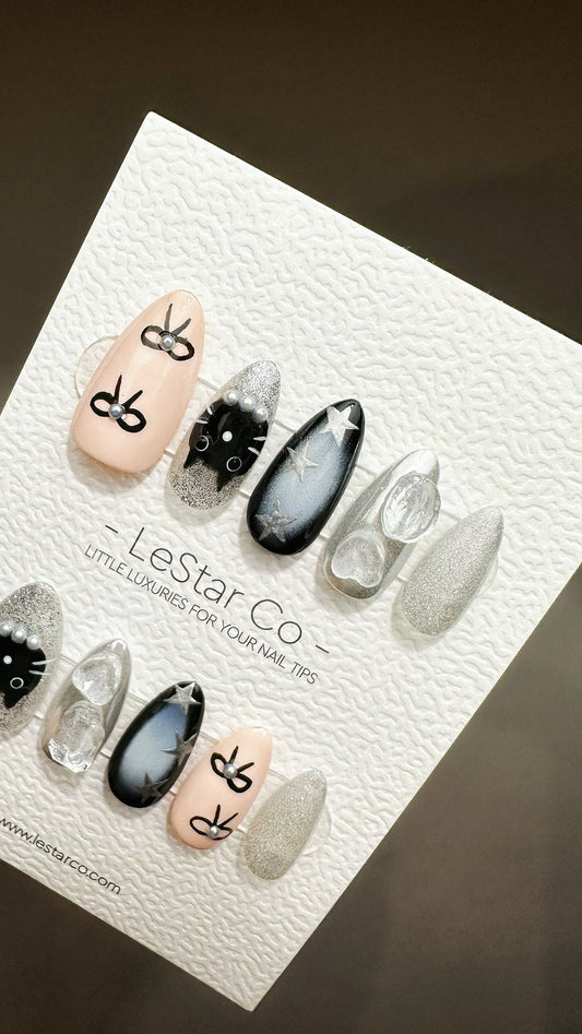 Reusable Kitty Cat Bow | Premium Press on Nails Gel | Fake Nails | Cute Fun Colorful Gel Nail Artist faux nails ML612
