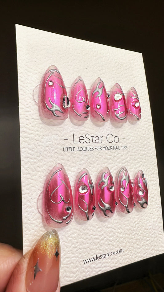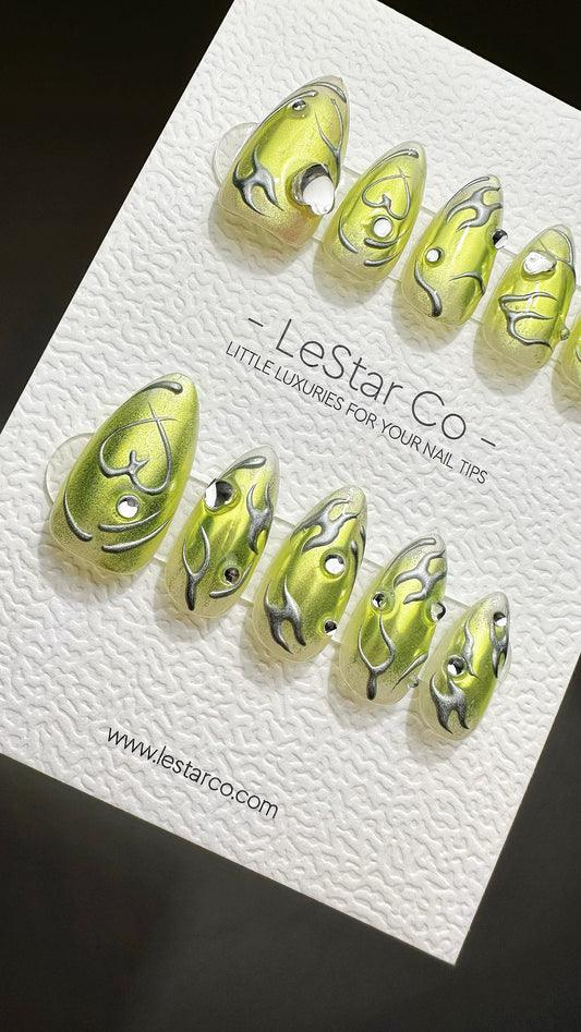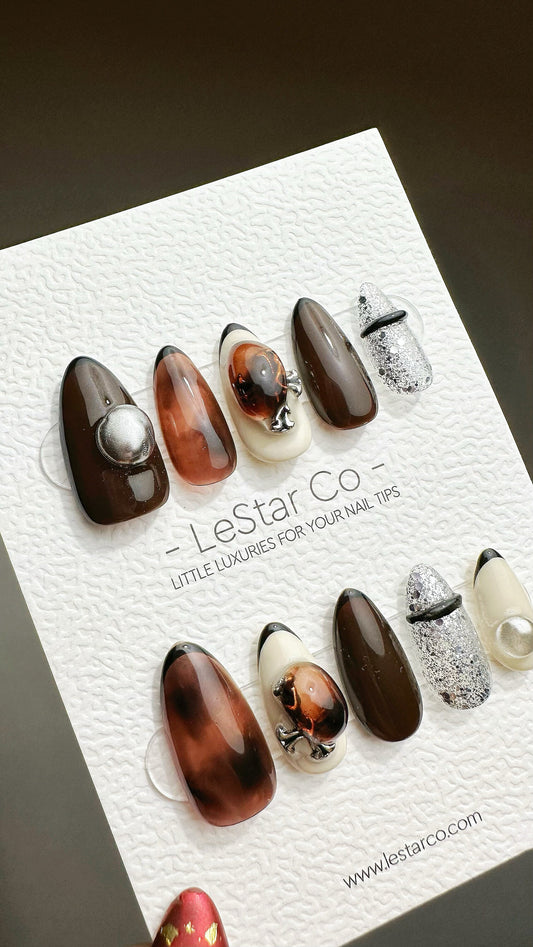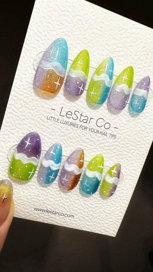 Reusable Celestial Candy Coating Cat Eye Effect Premium Short Press on Nails Gel Manicure | Fake Nails | Handmade | Lestarco nails TMR640