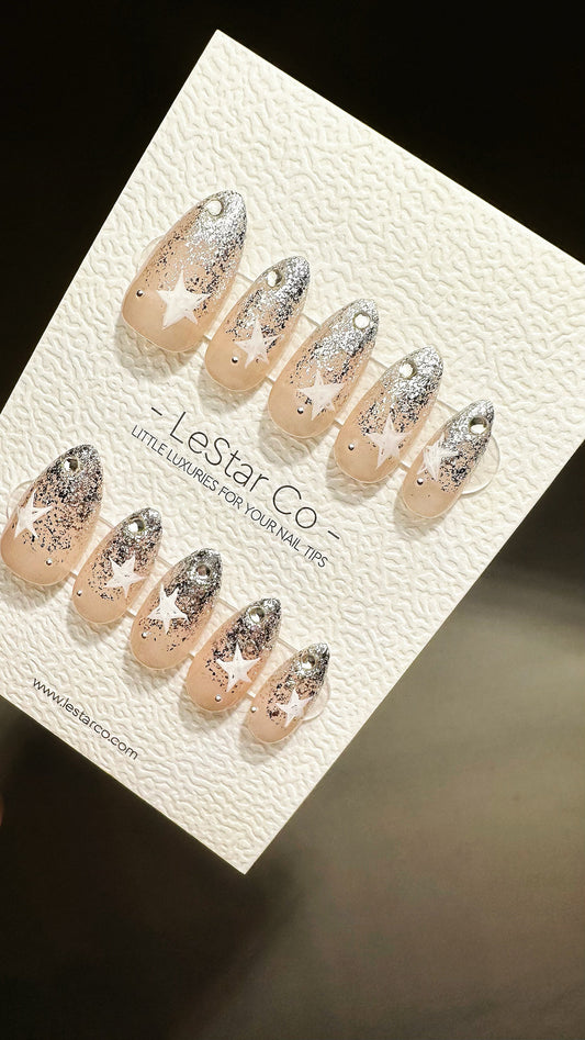 Reusable Silver Glitter Star | Premium Press on Nails Gel | Fake Nails | Cute Fun Colorful Gel Nail Artist faux nails ML629
