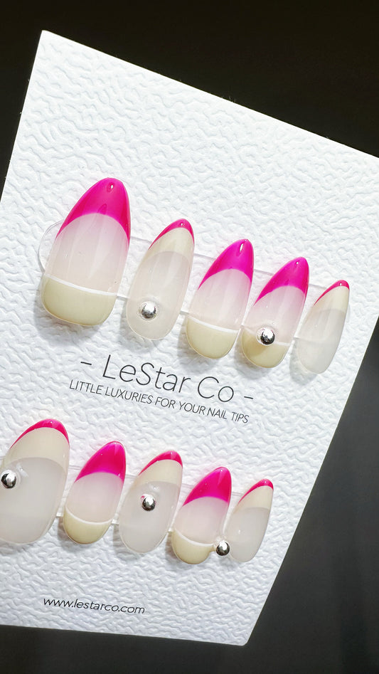 Reusable Make Me a Drink Pink French Tip | Premium Press on Nails Gel | Fake Nails | Cute Fun Colorful Gel Nail Artist faux nails ML623