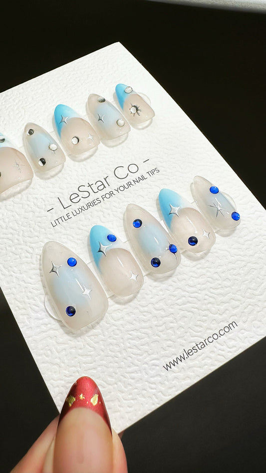 Reusable Matter of Time Blue Tip| Premium Press on Nails Gel | Fake Nails | Cute Fun Colorful Gel Nail Artist faux nails ML631