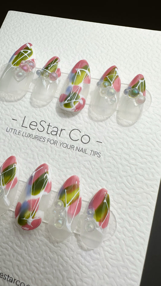 Reusable Garden Whimsy | Premium Press on Nails Gel | Fake Nails | Cute Colorful Gel Nail faux nails QN648