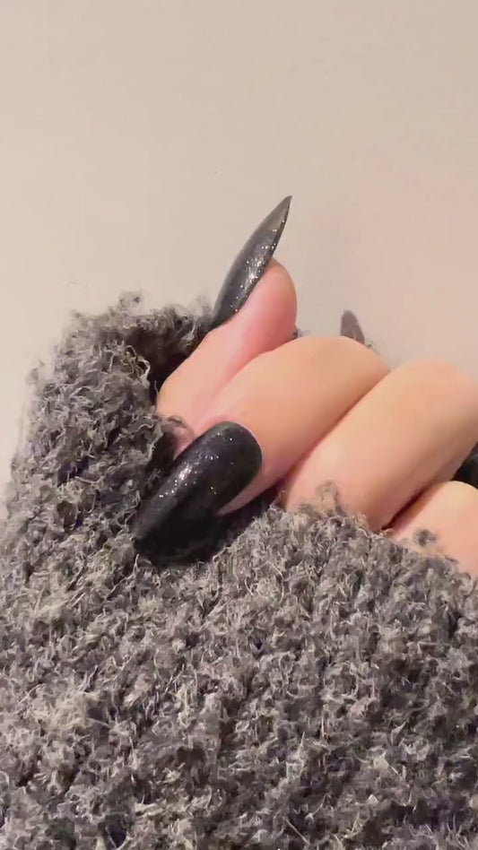 Lustrous Onyx | Sheer Black w/ Multi-Size Silver Glitter | Ultra Shine Long Lasting Brush on UV Gels Home Nail DIY Manicure Nail Art Supply