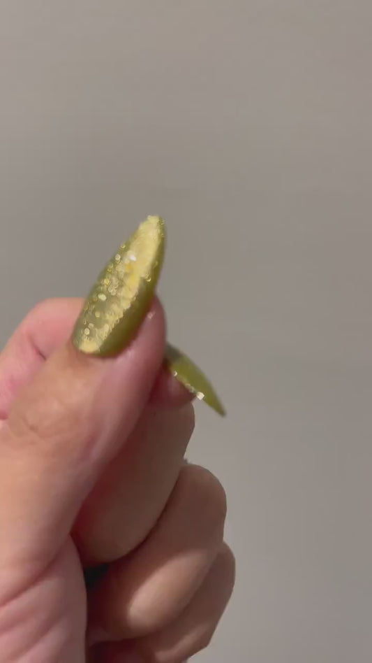 Olive Sprinkle |Cat Eye Gel Polish | Sheer Oliver Green w/Silver Shimmer | Long Lasting Brush on UV Gels Nail DIY Manicure Nail Art Supply