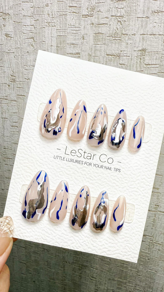 Reusable Metallic Flow|Premium Handmade Press on Nails Gel | Fake Nails | Cute Pressons Nail Artist faux nails TMR1054
