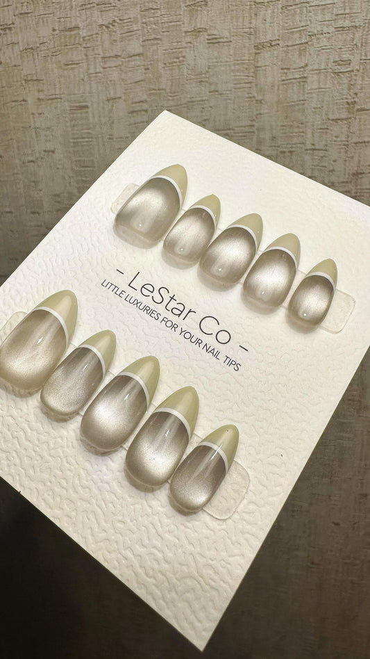 Reusable Icy Chic Cat Eye Effect French Tip| Premium Press on Nails Gel | Fake Nails | Cute Fun Colorful Gel Nail Artist faux nails ML921