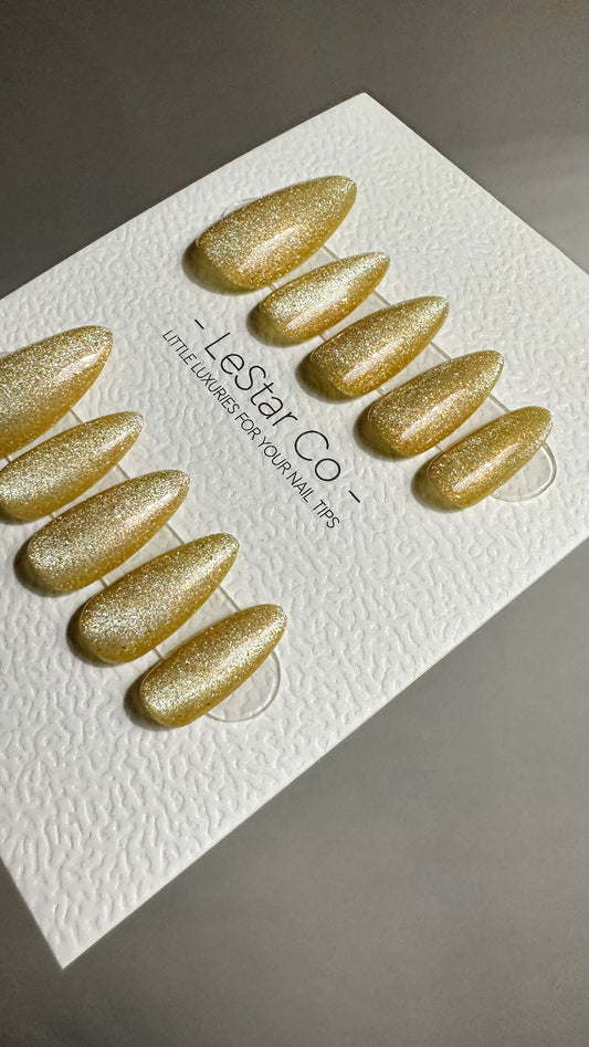 Reusable Shimmering Amber Cat Eye Effect | Nails Premium Press on Nails Gel Manicure | Fake Nails | Handmade | Lestarco faux nails 494zz