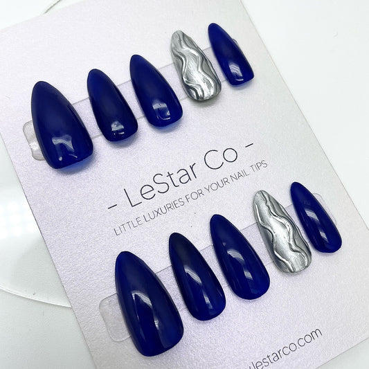 Reusable Gem Blue | Premium Press on Nails Gel Manicure | Fake Nails | Handpainted by Professional Nail Artist faux nails