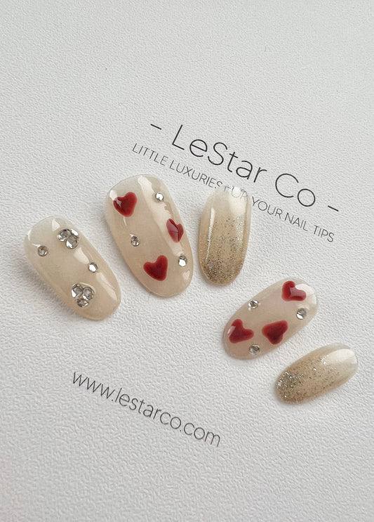 Reusable Love Story Nails Premium Short Press on Nails Gel Manicure | Fake Nails | Handmade | Lestarco faux nails XX223