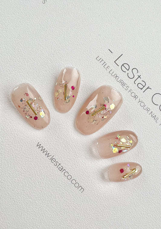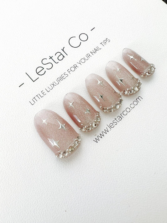 Reusable Nude Pink Cateye Starlit | Premium Press on Nails Gel | Fake Nails | Cute Fun Colorful Gel Nail Artist faux nails TT 304