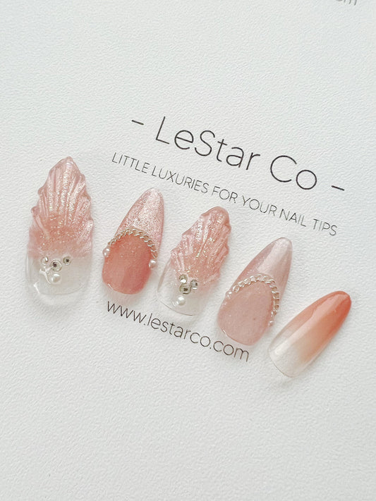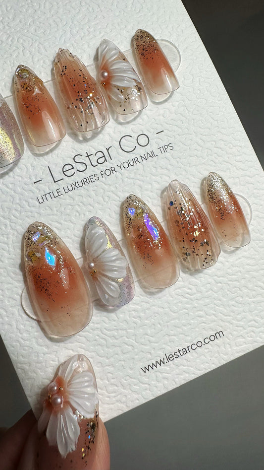 Reusable Blossom Flower Shimmer Spark Bliss| Premium Press on Nails Gel | Fake Nails | Custom Pressons Gel Nail Faux nails BB745