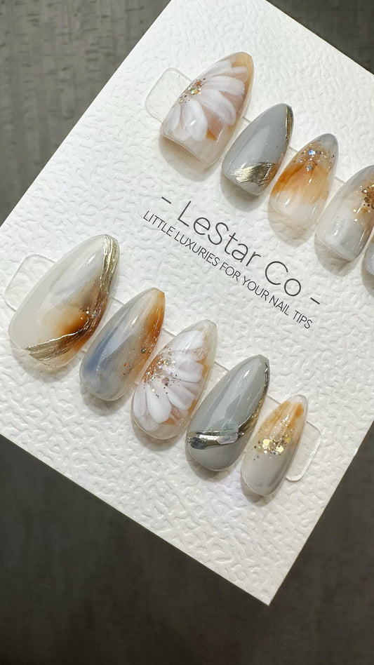 Reusable Smoky Floral | Premium Handmade Press on Nails Gel | Fake Nails | Cute Fun Colorful Gel Nail Artist faux nails BB896