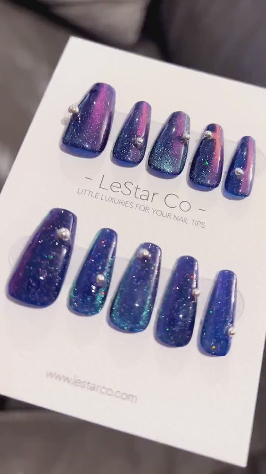 Reusable Ethereal Twilight Cat Eye Effect| Premium Press on Nails Gel Hand Painted Pressons Customizable Gel Nail Artist faux nails ML901