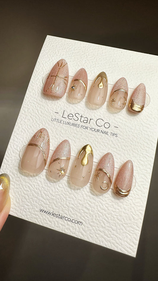 Reusable Starry Splash | Premium Press on Nails Gel Hand Painted Pressons Customizable Gel Nail Artist faux nails TMR1009