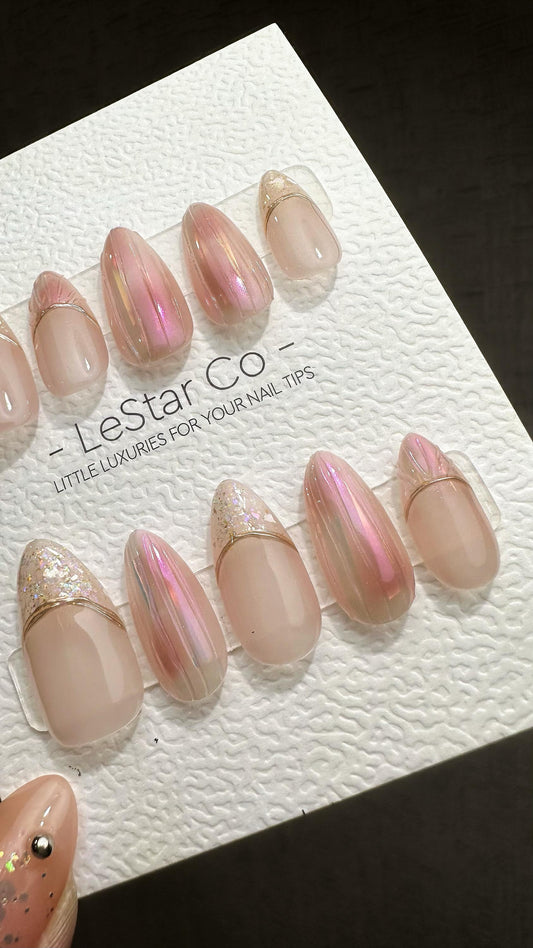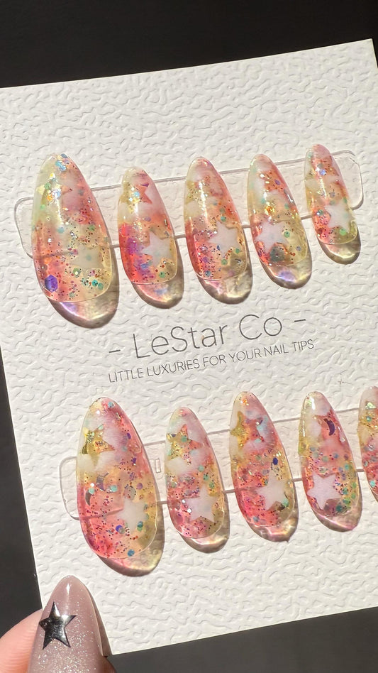 Reusable Rainbow Crystal Delight | Nails Premium Press on Nails Gel Manicure Hand Painted Pressons Handmade | Lestarco faux nails WM860