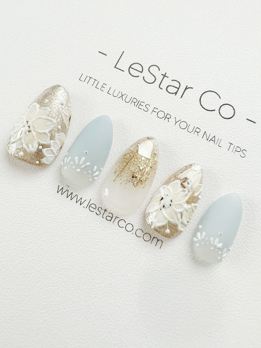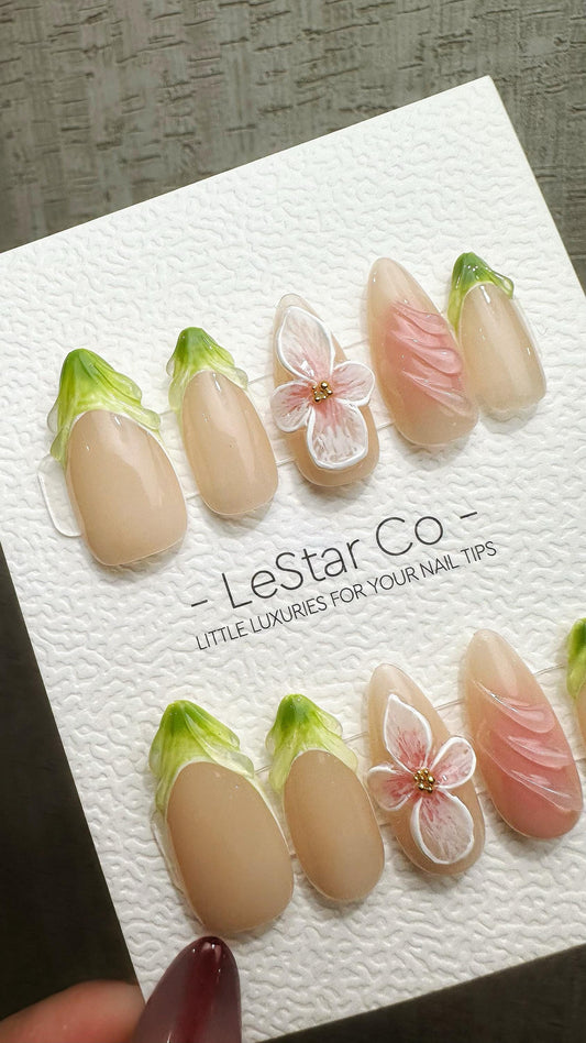 Reusable Garden Grace 3D Effect | Premium Press on Nails Gel Hand Painted Pressons Customizable Gel Nail Artist faux nails WM857