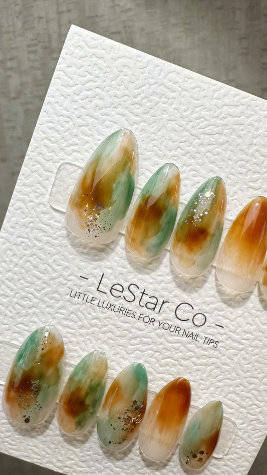 Reusable Amber Radiance | Premium Press on Nails Gel | Fake Nails | Cute Fun Colorful Gel Nail Artist faux nails TT253