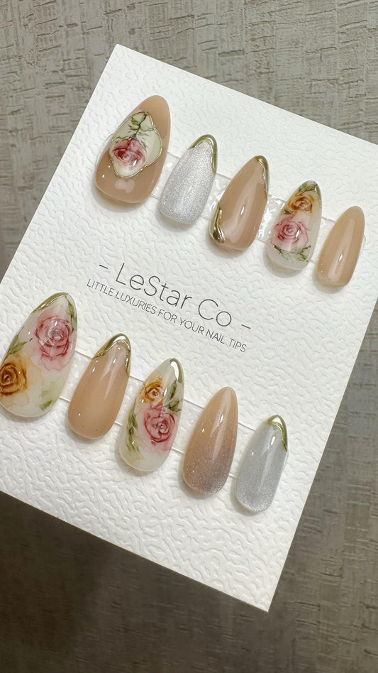 Reusable Rose Lover | Premium Handmade Press on Nails Gel Hand Painted Pressons Customizable Gel Nail Artist faux nails QN974