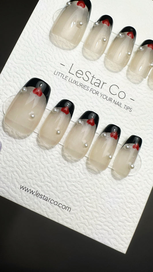 Reusable Chic Crimson Heart | Premium Press on Nails Gel Manicure Hand Painted Pressons Handmade Gel Nail Artist faux nails YR751