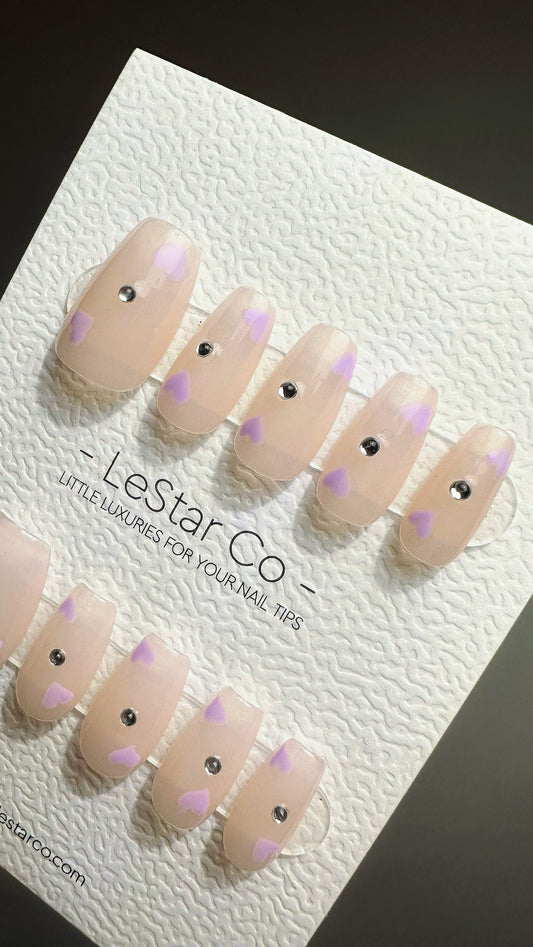 Reusable Lavender Luxe Subtle Nude | Premium Press on Nails Gel Manicure Hand Painted Pressons Handmade Gel Nail Artist faux nails YR747