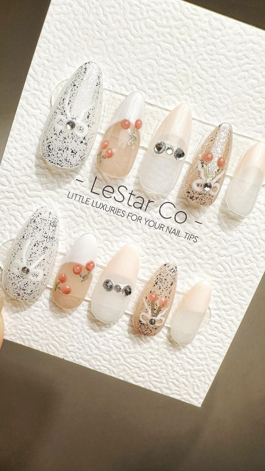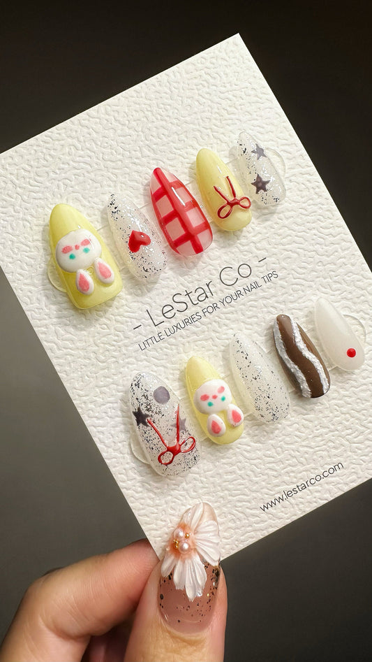Reusable 3D Cute Bunny Ribbon | Premium Press on Nails Gel Manicure | Fake Nails | Handmade | Artificial nails YR768
