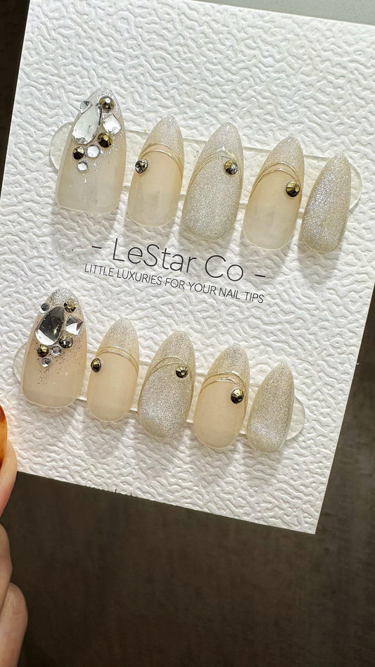 Reusable Dazzling Shine Cat Eye Effect| Premium Press on Nails Gel Hand Painted Pressons Customizable Gel Nail Artist faux nails ML805
