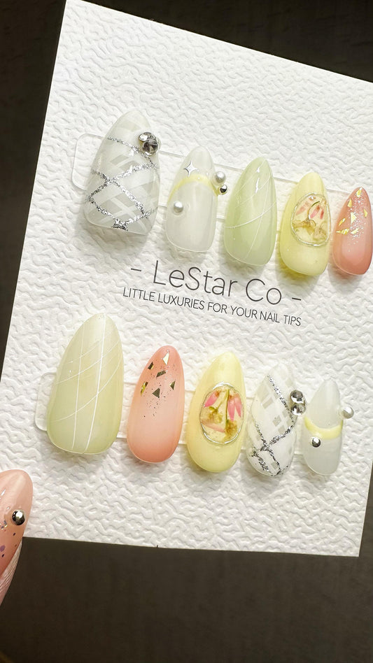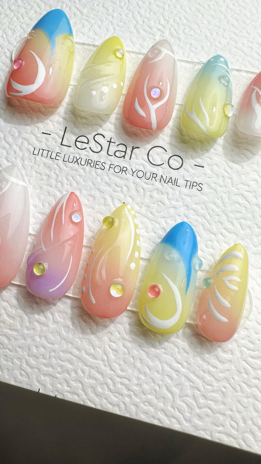 Reusable Tropical Breeze| Premium Press on Nails Gel Hand Painted Pressons Customizable Gel Nail Artist faux nails ML801