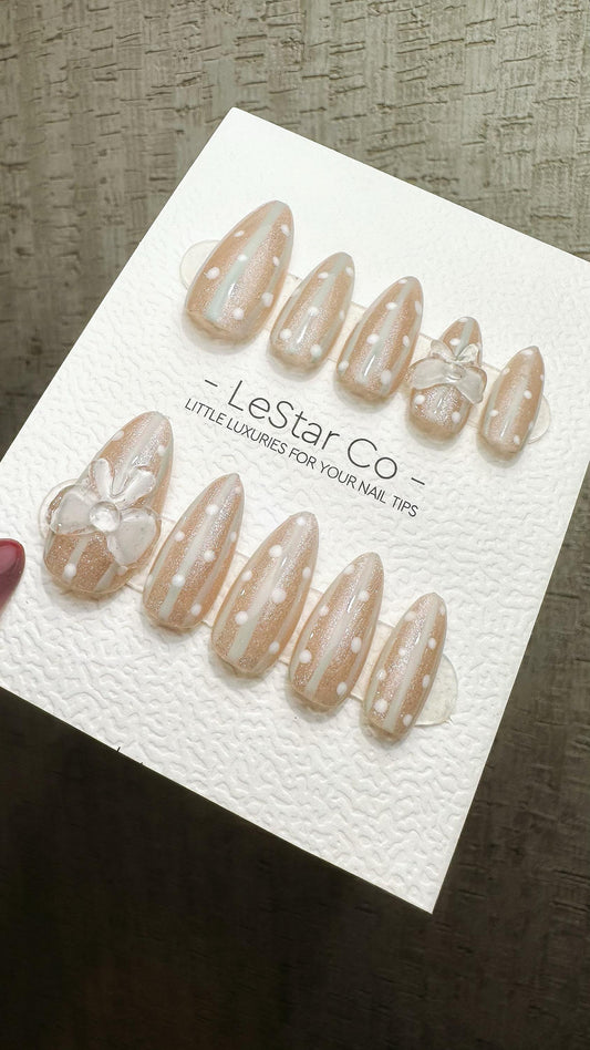 Reusable Polka Dot Shimmering Ribbon | Premium Press on Nails Gel | Fake Nails | Cute Fun Colorful Gel Nail Artist faux nails WM861