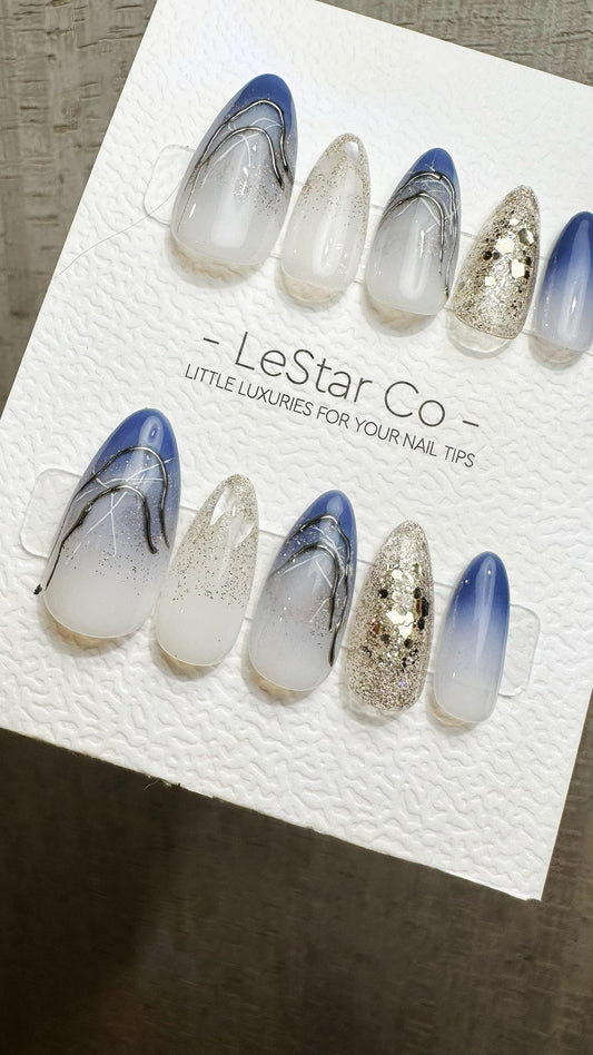 Reusable Frosty Blue Galaxy | Premium Press on Nails Gel Hand Painted Pressons Customizable Gel Nail Artist faux nails QN955