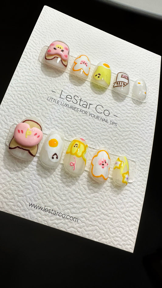Reusable Piggy Piggy Flower Egg 3D Design | Premium Press on Nails Gel Manicure | Fake Nails | Handpainted by Professional Faux Nails YR581