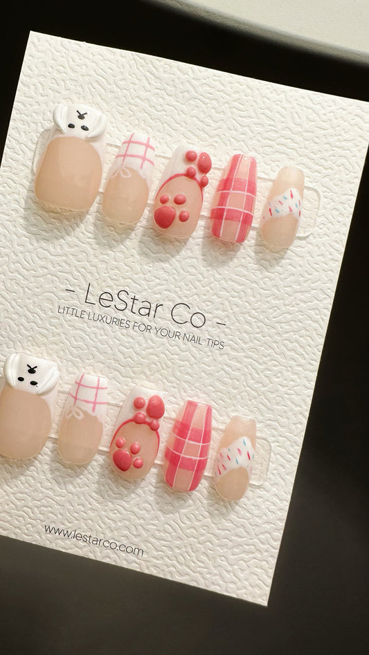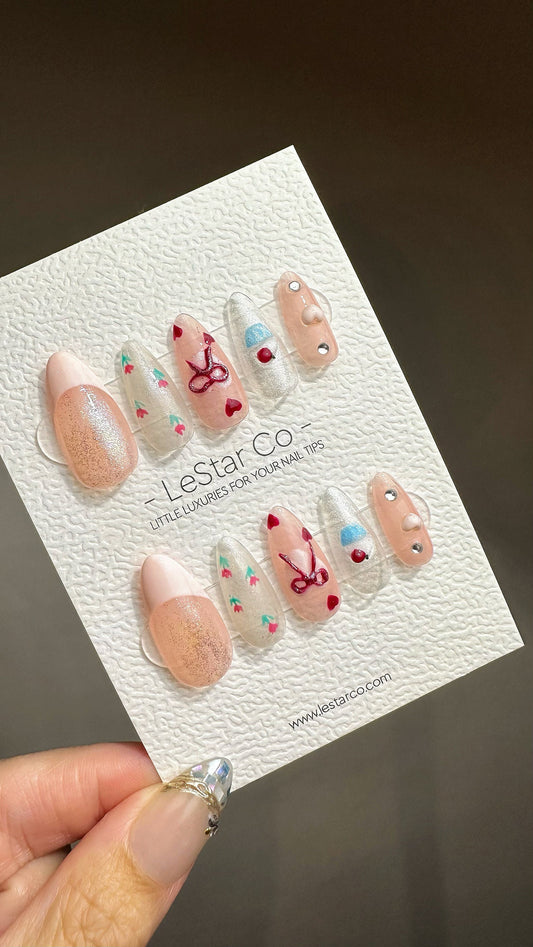 Reusable Candy Bunny | Premium Press on Nails Gel Manicure Handprint Pressons Handmade | Lestarco faux nails YR680