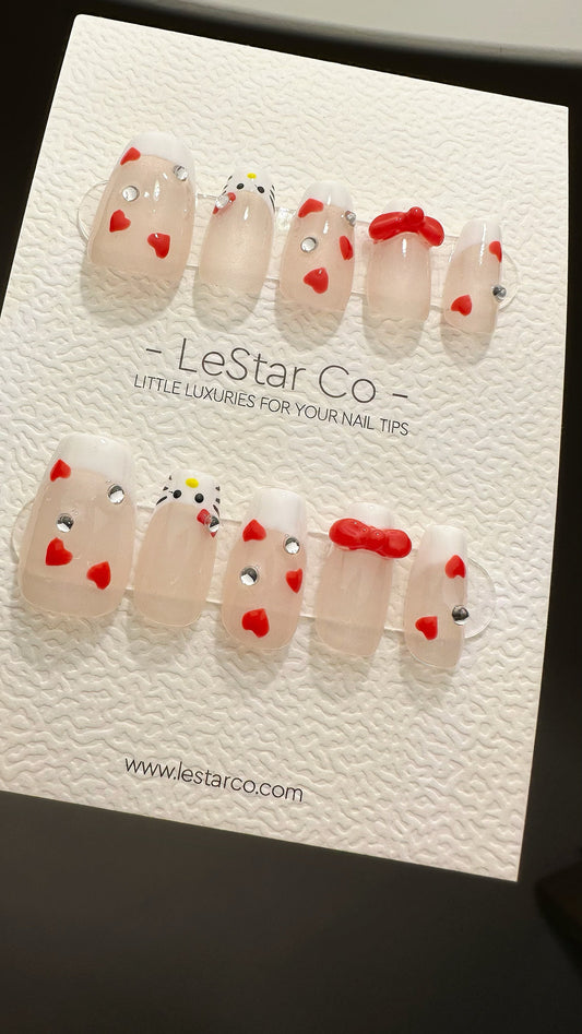Reusable My Kitty Friend 3D Design | Premium Press on Nails Gel Manicure | Fake Nails | Handmade | Artificial nails YR574