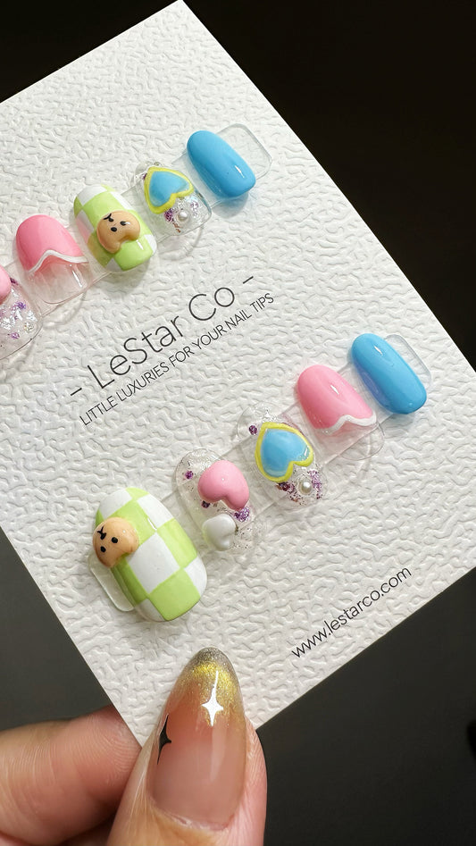 Reusable Bear Lover | Premium Press on Nails Gel Manicure | Fake Nails | Handpainted by Professional Nail Faux Nails YR578