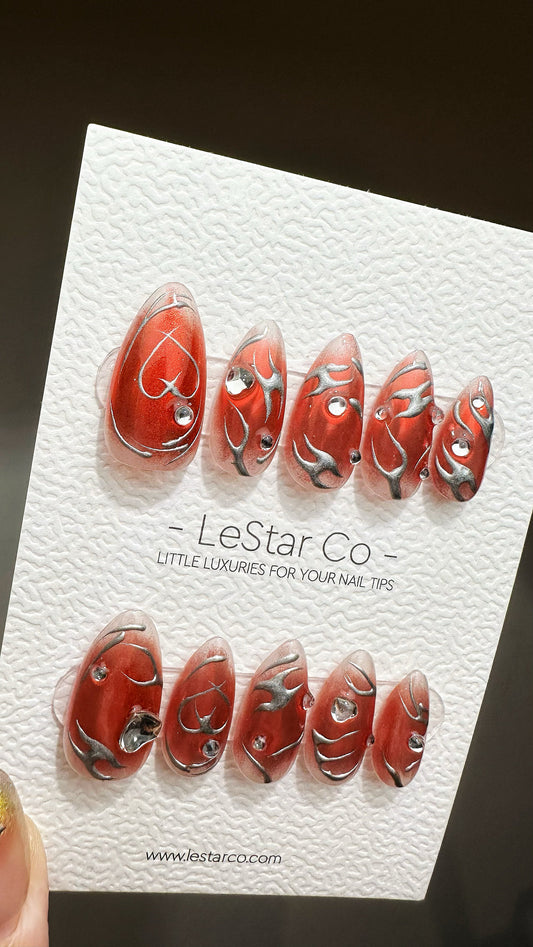Reusable Rosy Ribbons | Premium Press on Nails Gel Manicure Handprint Pressons Handmade | Lestarco faux nails YR682
