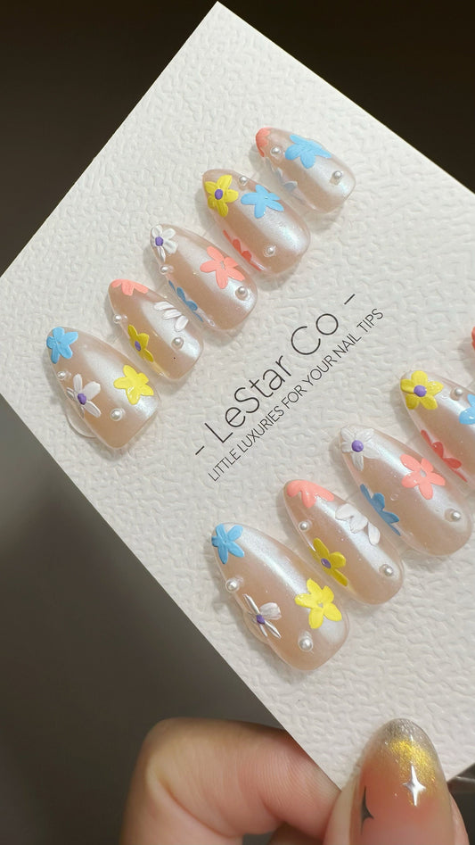 Reusable Flower Farm | Premium Press on Nails Gel | Fake Nails | Cute Fun Colorful Gel Nail Artist faux nails ML607
