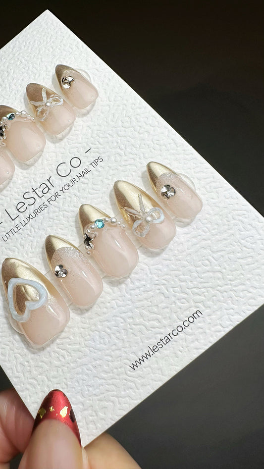 EOFY Reusable Golden Heartbeat | Premium Press on Nails Gel | Fake Nails | Cute Fun Colorful Gel Nail Artist faux nails ML655