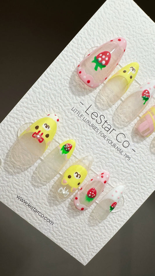 Reusable Strawberry Cute Bear | Premium Press on Nails Gel Manicure Handprint Pressons Handmade | Lestarco faux nails YR677